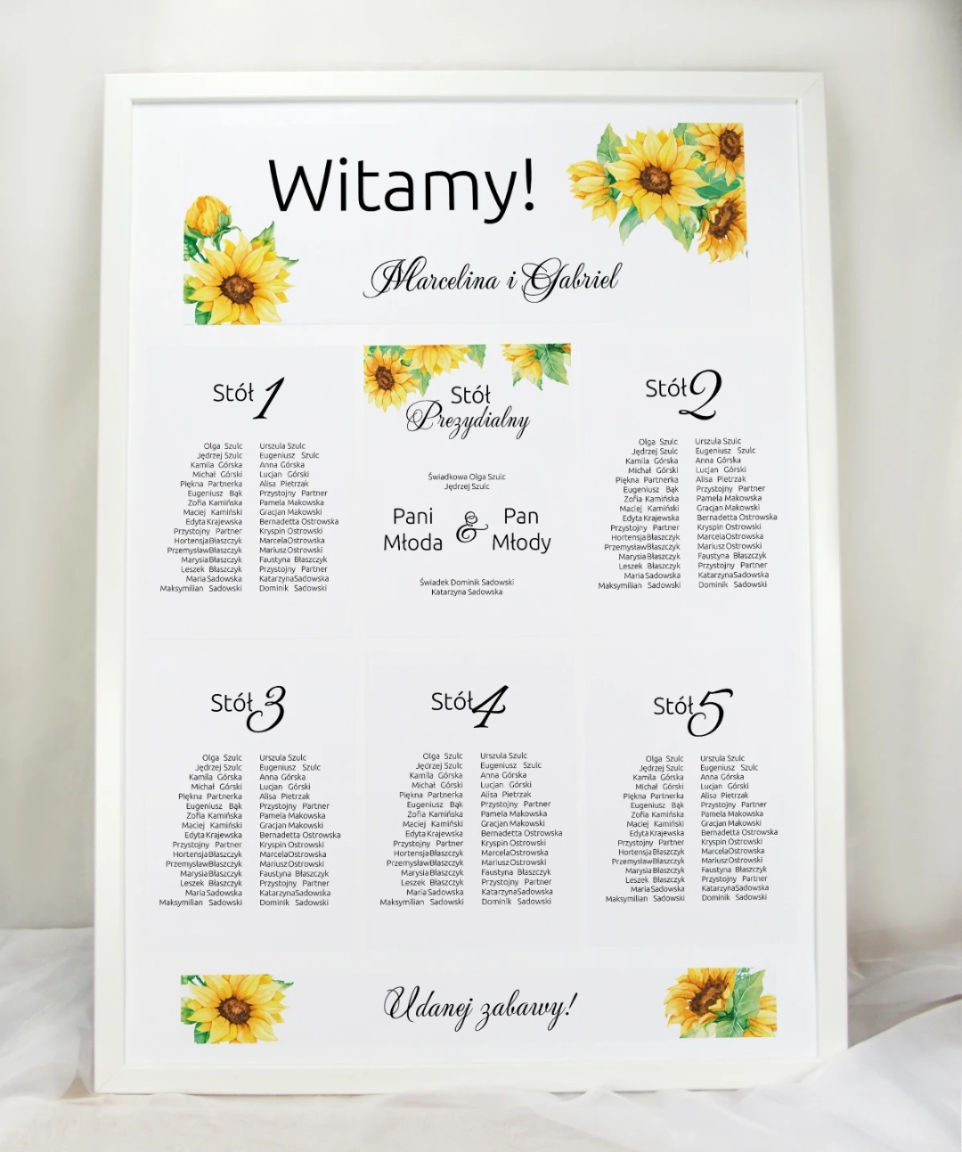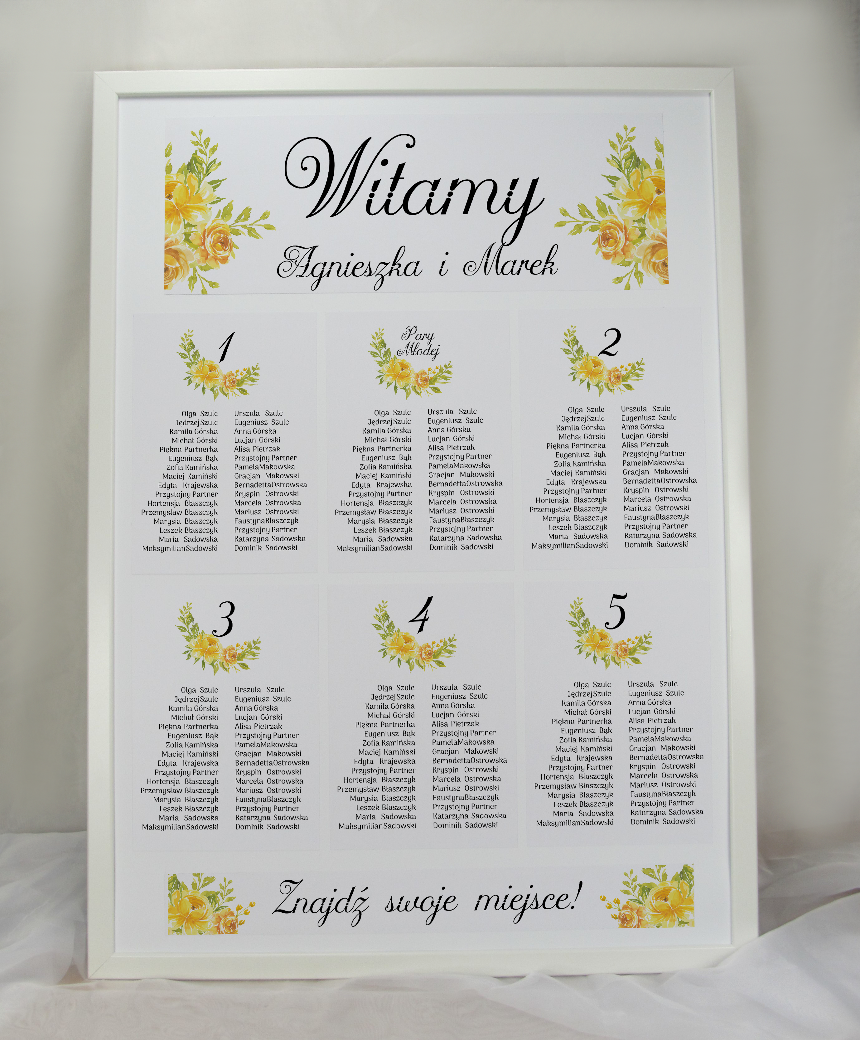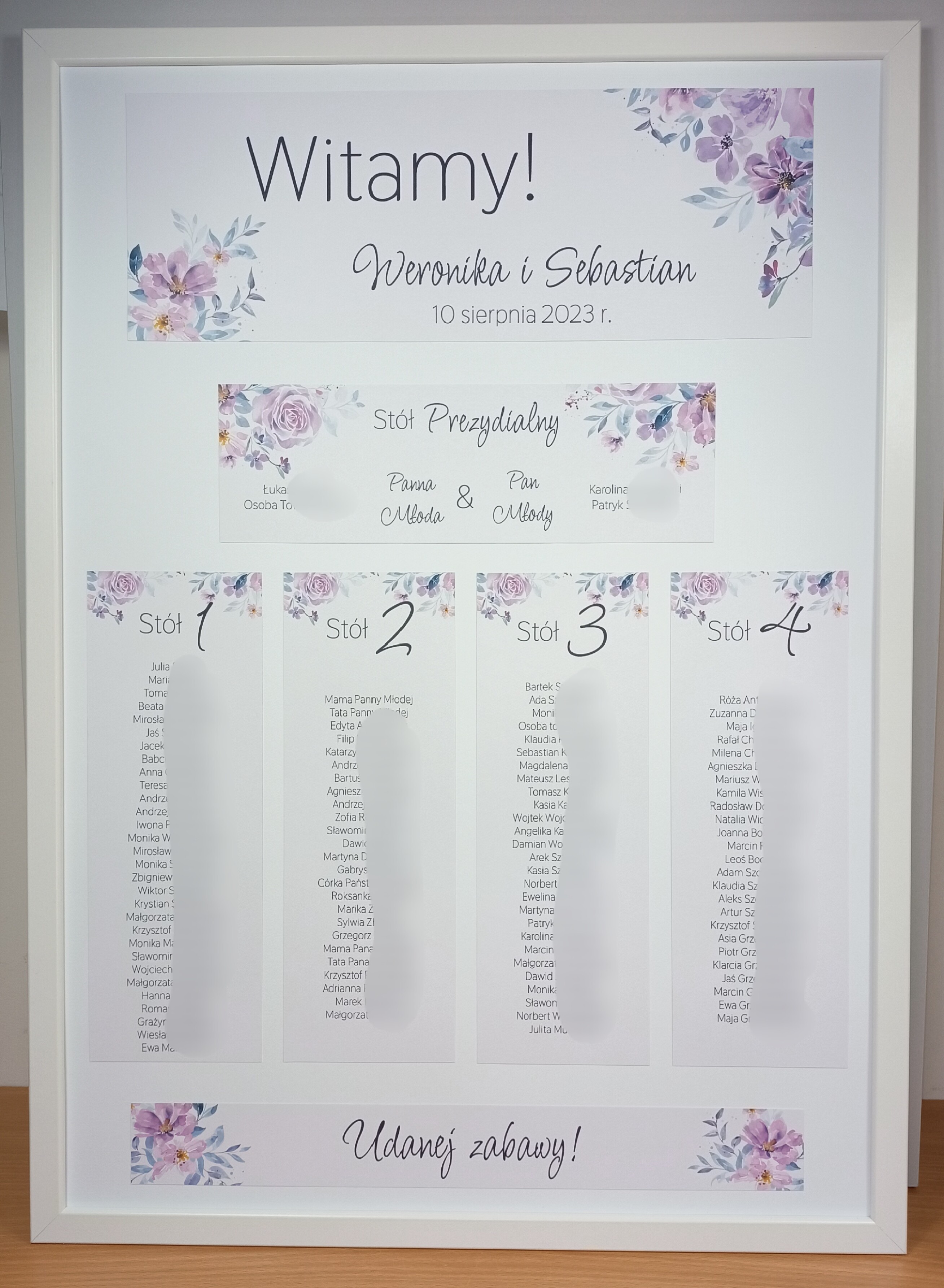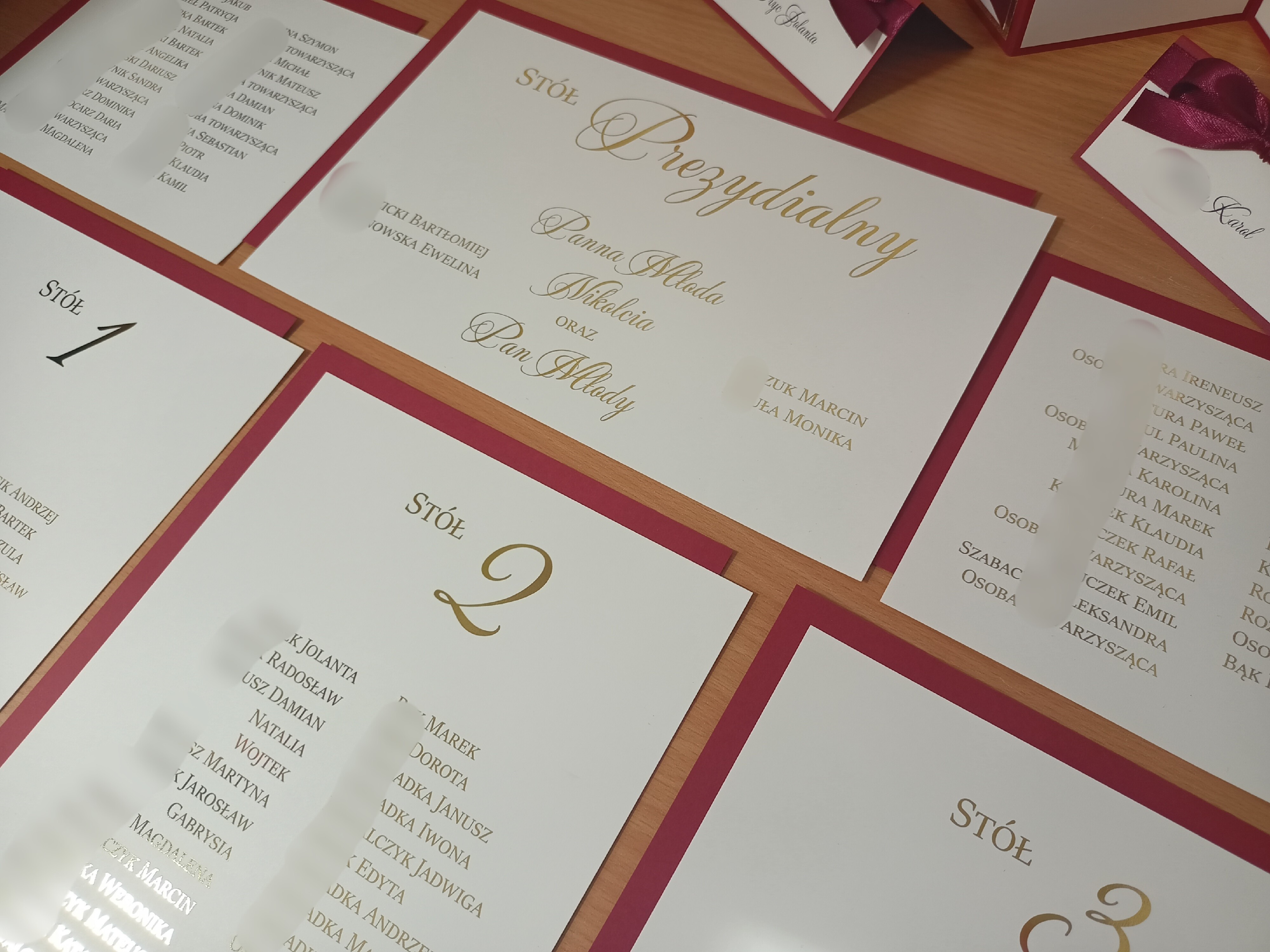 ceny numerów na stoły - od 5,80 zł/szt, gotowe plany w ramie 50x70 cm - od 123 zł/szt