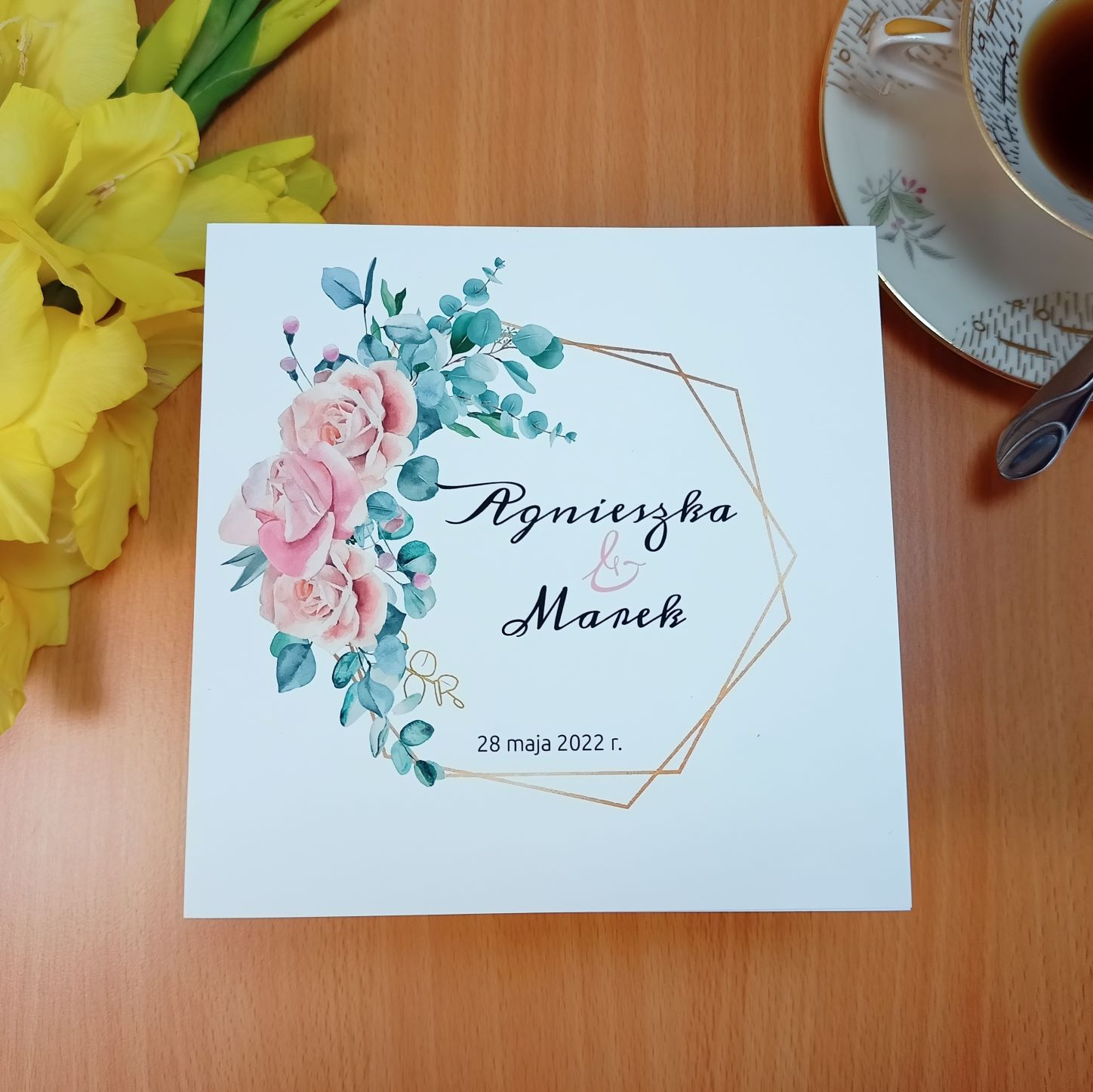 Zaproszenie składane jest do wymiarów 14x14 cm. Po rozłożeniu całość mierzy 14x28 cm. Papier użyty do zaproszeń ma gramaturę 250g i jest zarówno sztywny jak i ładnie poddaje się bigowaniu, a zagięcie jest estetyczne i gładkie. Do wyboru jest kolor biały lub kremowy.